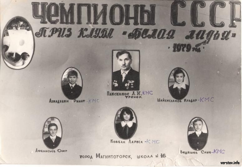 Легендарный детский тренер-общественник, воспитавший не одно поколение магнитогорских шахматистов, Леонид Николаевич Плисконос – уникальное явление в истории магнитогорских шахмат. Сергей и Владислав Андреевы, Валерий Шебаршов, Игорь Ревякин, Евгений Морозов, Николай Панов, Татьяна Коваленко, Ирина Капустина – это далеко не полный список тех, кто блистал на шахматном небосклоне Магнитки под руководством Леонида Николаевича. Навсегда в нашей памяти останется победа магнитогорских ребят, представлявших школу №16 в одиннадцатом всесоюзном шахматном турнире пионерских дружин на «Приз чемпионов мира» Белая ладья в городе Антрацит (Украина).