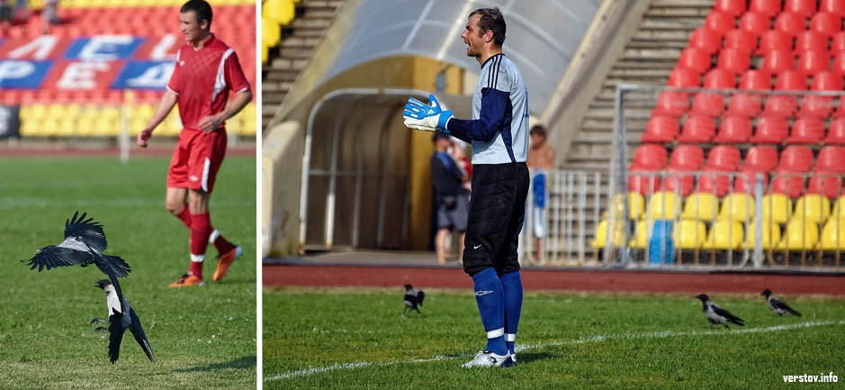 Не обращая особого внимания на футболистов и голкипера хозяев Алексея Вилкова, птицы выстроились в «оборонительную шеренгу» и минут 5 гуляли по полю. Опережая события, отметим, что после этого забавного эпизода мяч в сетку ворот «Металлурга» больше не попадал.