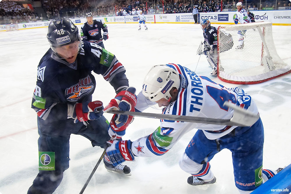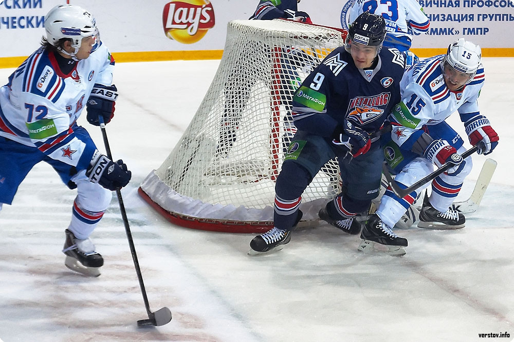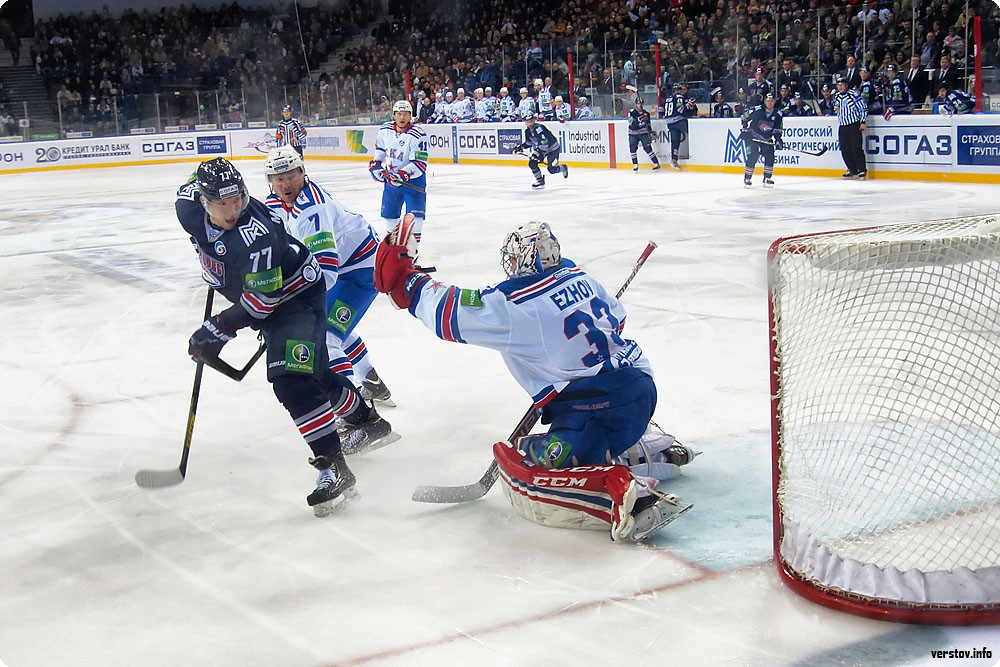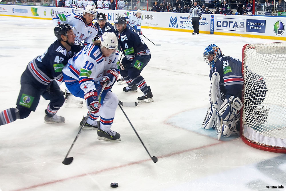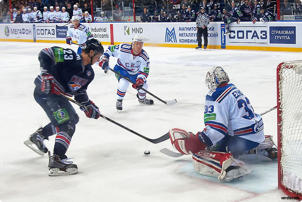 До поры до времени хозяева, поддерживаемые трибунами познавшей первый аншлаг в сезоне «Арены – Металлург», бойко соперничали с питерской атакующей машиной, которая уже на третьей минуте усилиями Макарова открыла счёт в матче – 1:0. Контаргумент нашёлся у Зарипова в большинстве: взяв в соавторы своего успеха Мозякина и Коваржа, он буквально «прошил» Ежова броском в большинстве – 1:1.