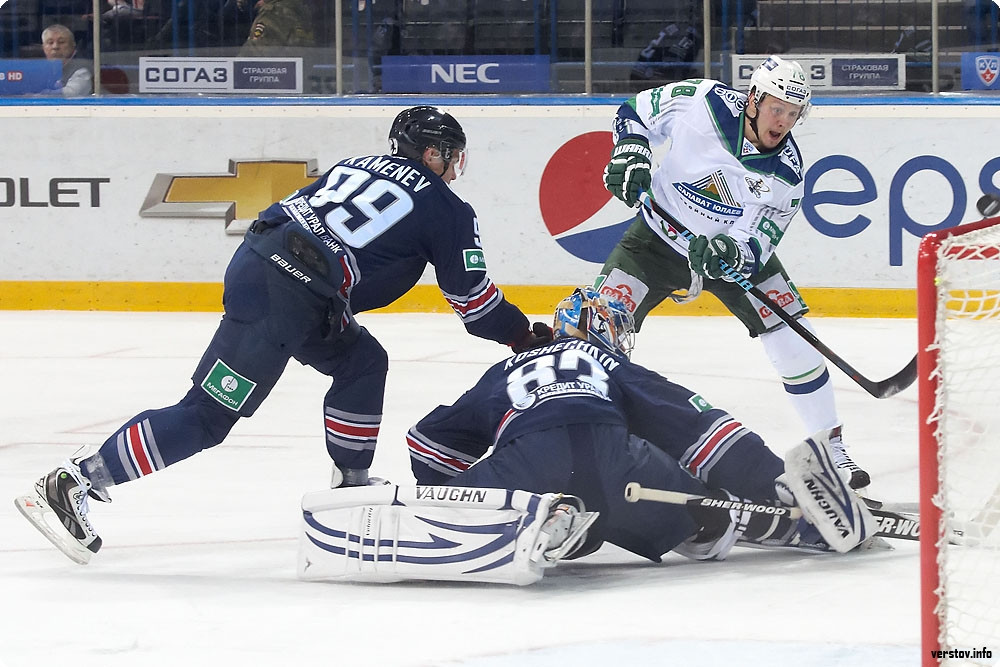 Прекрасный момент уже на 4-й минуте игры имел лучший форвард «Магнитки» в регулярном чемпионате Ян Коварж: его проход удивил всех, кроме Сохатского, который перед магнитогорским чехом не дрогнул. Ответ уфимцев был предложен Скачковым: он пытался объехать голкипера хозяев, но магнитогорский великан явно не собирался так легко пропускать.
