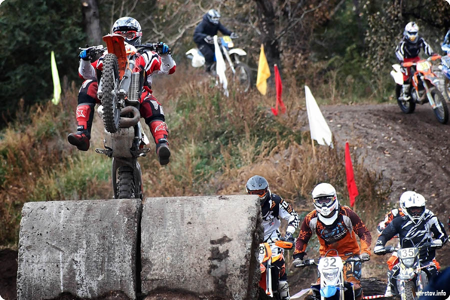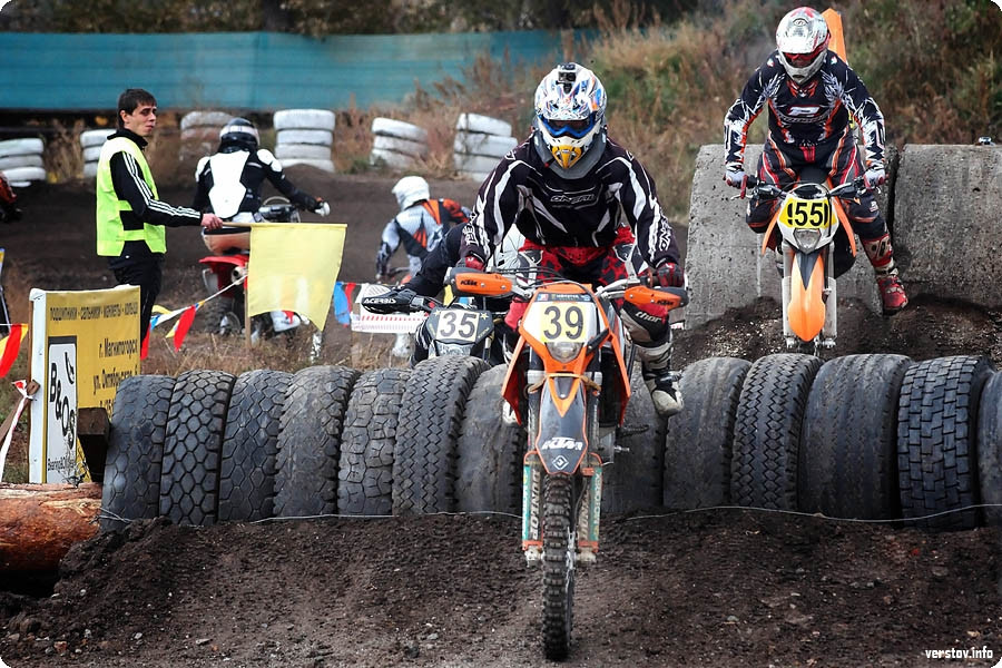 По той же традиции, в Магнитке была подготовлена интереснейшая и тяжелейшая трасса: здесь и завалы из камней, и ямы, и двухметровые бетонные препятствия, и многое другое. Пройти даже один круг сложно, а спортсменам предстояло одолеть шесть кругов по трехметровой трассе за один заезд. Не каждый мотокроссмен и не каждый раз мог преодолеть, например, препятствие из шин. Один из спортсменов, въезжая на завал, вылетел с седла своего железного коня и упал, чудом не травмировавшись. Другой пытался перетащить мотоцикл, что не запрещено правилами, но у него не вышло. Мастерски преодолевал самые сложные препятствия участник под номером 1 – Сергей Терентьев. В свой 21-ый день рождения он сделал себе лучший подарок – победу. Впрочем, это не удивительно. Не зря одна из болельщиц сказала нашему корреспонденту, что Сергей (как и другой участник, Владимир Лукашин) – лучший из лучших. Несмотря на молодость, Сергей является признанным лидером мотокросса в Магнитогорске: