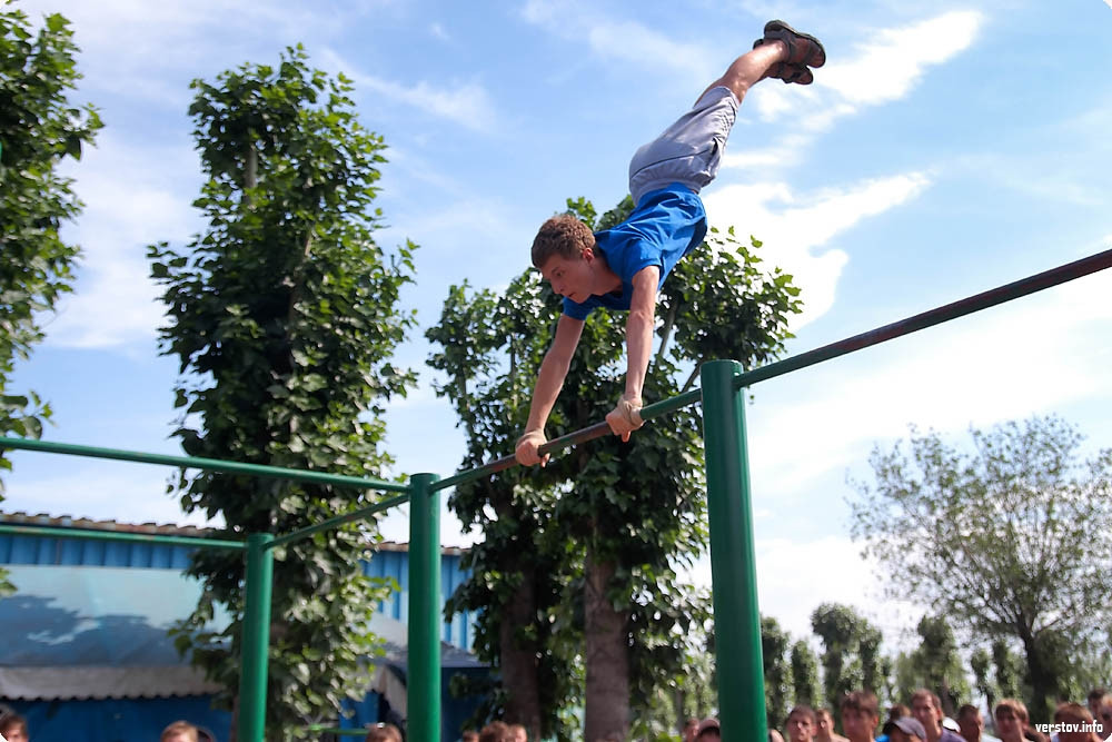 Пожалуй, самой зрелищной частью фестиваля стали соревнования в дисциплине «фристайл». За определенное время участники должны были представить судьям и зрителям свободную программу упражнений на брусьях и турниках, состоящую из сложных связок и силовых элементов. Не у всех все получалось идеально, однако зрители каждого выступавшего поддерживали дружными аплодисментами. Один из спортсменов подготовил целое костюмированное шоу - подтягивался на турнике в рубашке и галстуке. А десятилетний Артем Яковлев, самый молодой участник соревнований, поразил судей сложной программой, выполненной на вполне серьезном «взрослом» уровне.